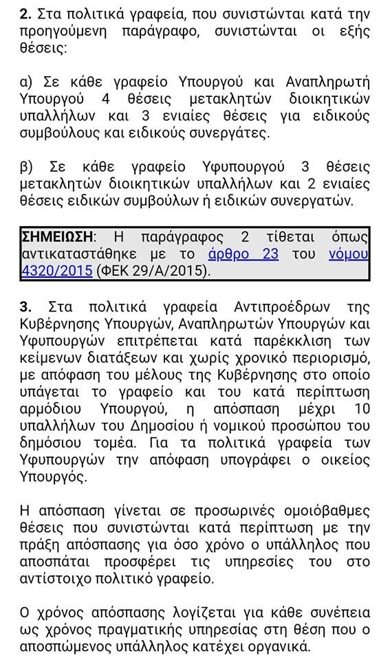 Παρακάτω, τι προβλέπει ο νόμος για τις μετακλητές θέσεις και τις αποσπάσεις σε γραφεία υπουργών και υφυπουργών: