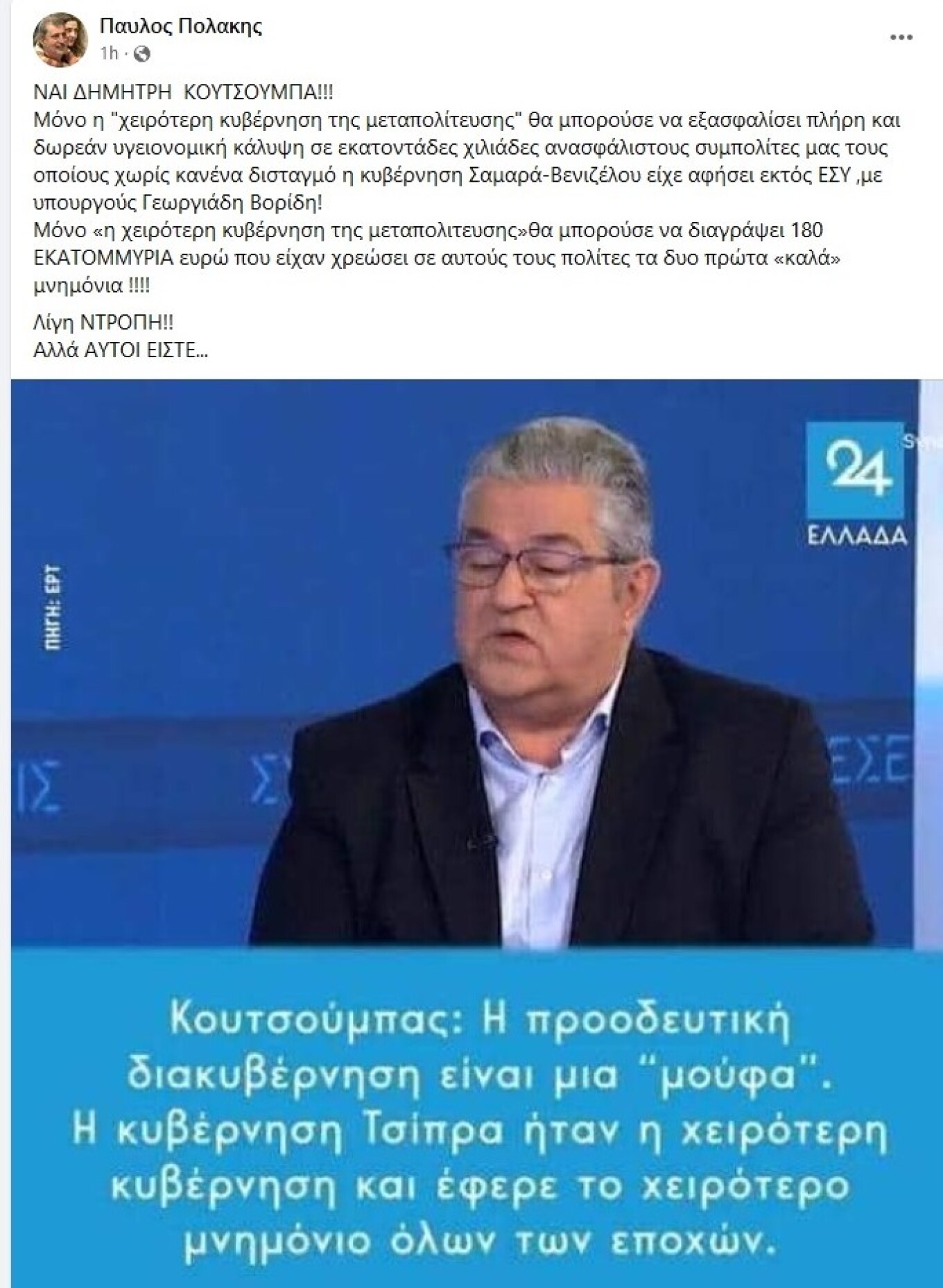 Η ανάρτηση του Παύλου Πολάκη: