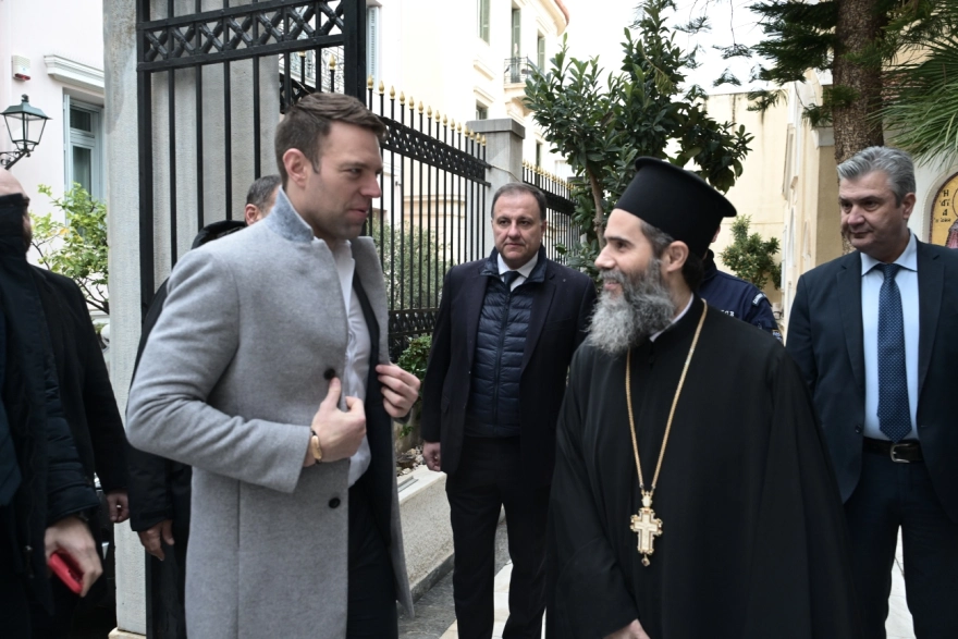 Δείτε φωτογραφίες από την άφιξη του Στέφανου Κασσελάκη στην Αρχιεπισκοπή, στην Πλάκα: