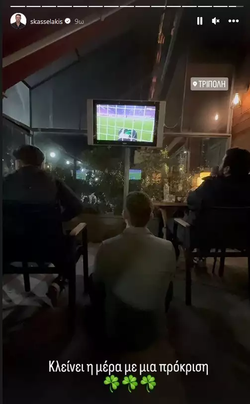 “Κλείνει η μέρα με μία πρόκριση”, έγραψε ο πρόεδρος του ΣΥΡΙΖΑ στην ανάρτησή του, στην οποία φαίνεται να παρακολουθεί τον αγώνα στην Τρίπολη. Στη λεζάντα πρόσθεσε μάλιστα και τρία τριφύλλια.