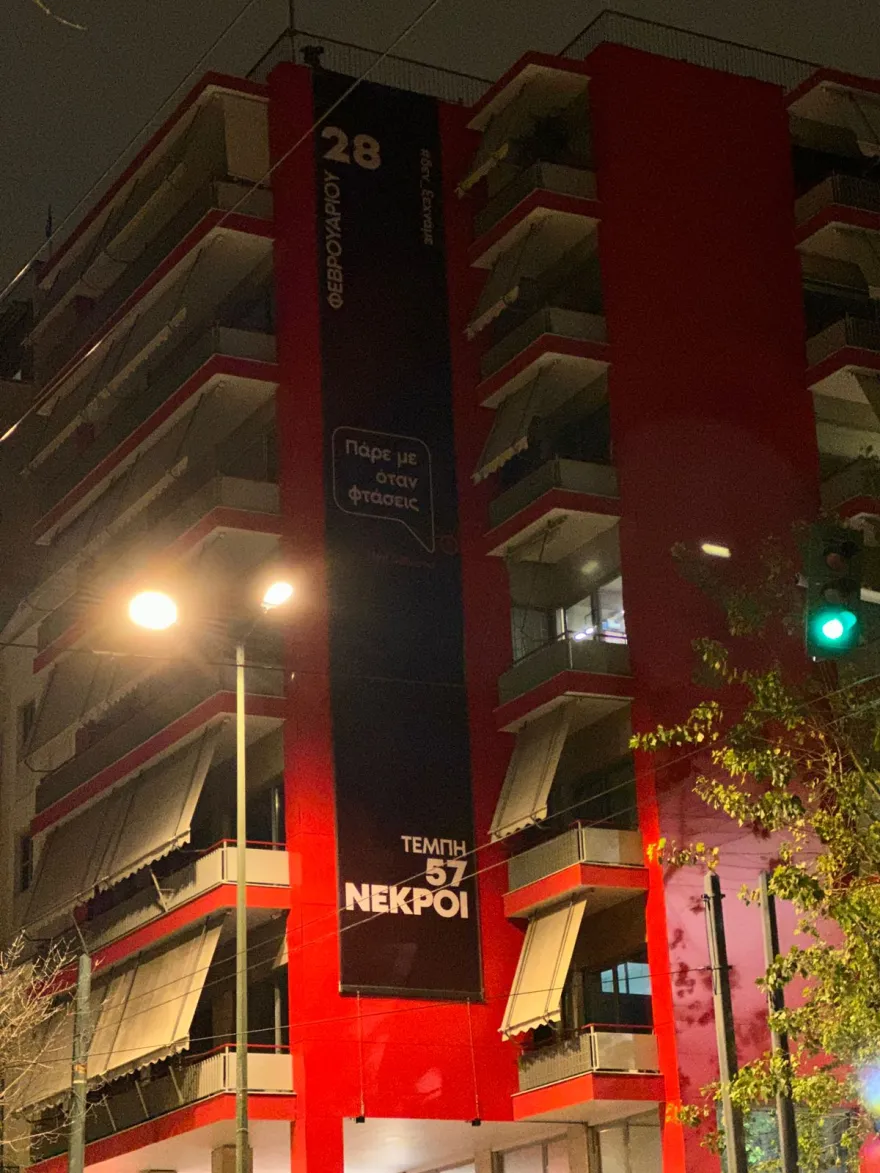 Με αφορμή τη συμπλήρωση ενός έτους από την τραγωδία στα κεντρικά γραφεία του ΣΥΡΙΖΑ στην Κουμουνδούρου τοποθετήθηκε ένα τεράστιο μαύρο πανό το οποίο αναφέρει: «Πάρε με όταν φτάσεις- Τέμπη 57 νεκροί».