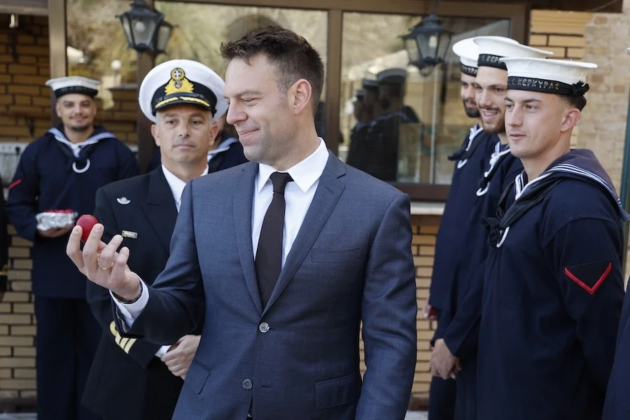 Ο Σ.Κασσελάκης, αντάλλαξε ευχές και τσούγκρισε κόκκινα αυγά με ναύτες και αξιωματικούς.