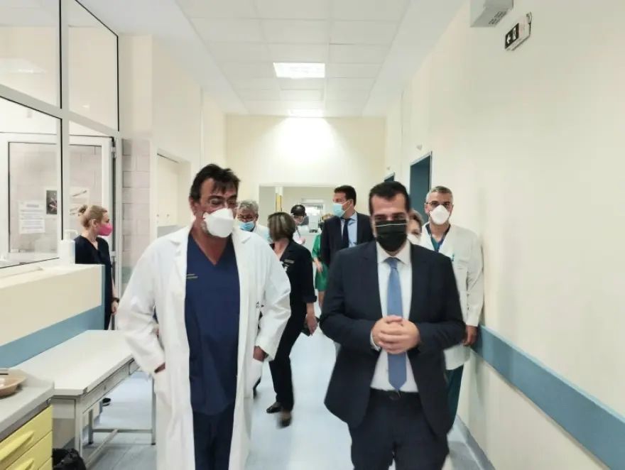 Ο υπουργός Υγείας, Θάνος Πλεύρης, επισκέφθηκε το πρωί της Τετάρτης το νοσοκομείο «Λαϊκό».