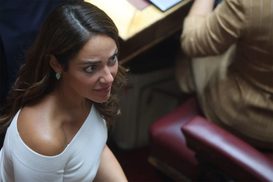 Στα βουλευτικά έδρανα βρέθηκε, πριν την έναρξη της συνεδρίασης και η υφυπουργός Παιδείας Δόμνα Μιχαηλίδου, η οποία μάλιστα καθόταν σε πηγαδάκι με συναδέλφους της.