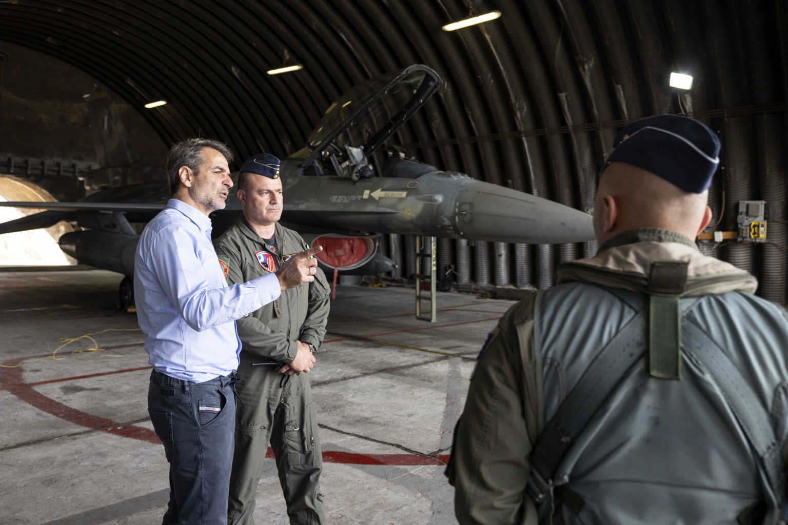O Κυριάκος Μητσοτάκης, επιθεώρησε αεροσκάφη τύπου VIPER και F-16 ενώ ενημερώθηκε για την αποστολή, την οργάνωση και ετοιμότητα της Πτέρυγας Μάχης, την αναβάθμιση των αεροσκαφών και τη συνολικότερη ενίσχυση των Ενόπλων Δυνάμεων.