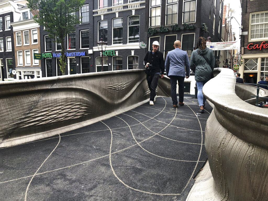 Η πρώτη ατσάλινη 3D-printed γέφυρα του κόσμου άνοιξε για το κοινό στο Άμστερνταμ και δημιουργήθηκε αποκλειστικά από ρομποτικούς βραχίονες οι οποίοι χρησιμοποιούσαν πυρσούς συγκόλλησης για να προσθέσουν στρώμα-στρώμα τα υλικά της γέφυρας.
