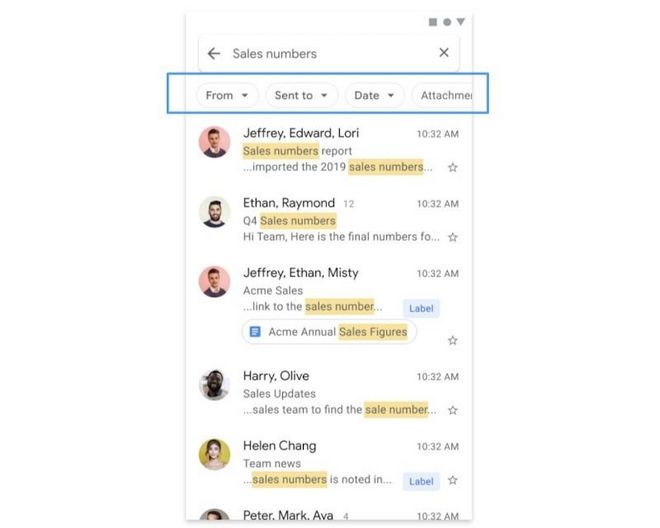 Όπως φαίνεται στο στιγμιότυπο οθόνης, η νέα λειτουργία επιτρέπει στους χρήστες να εντοπίσουν emails με βάση τον αποστολέα, τον παραλήπτη, την ημερομηνία αποστολής και πολλά άλλα. Προκειμένου να θέσουν εν ενεργεία το φίλτρο που επιθυμούν, αρκεί απλώς να πατήσουν μια συγκεκριμένη κατηγορία και να οριστικοποιήσουν την επιλογή τους.