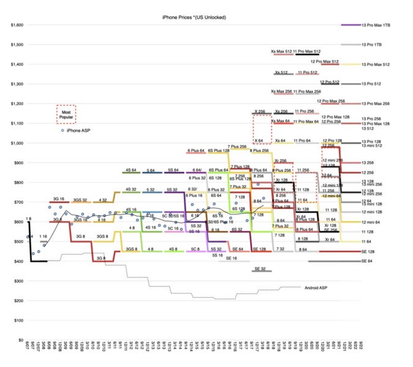 Ο αναλυτής Horace Dediu χαρακτηρίζει το iPhone 13 ως “το πιο σημαντικό iPhone στην ιστορία” και μοιράζεται δημόσια μερικές γραφικές παραστάσεις οι οποίες δείχνουν την εξέλιξη τιμής όλων των iPhone που έχουν κυκλοφορήσει μέχρι σήμερα.