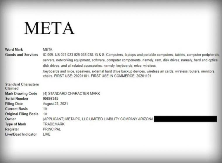 Συγκεκριμένα, όπως μετέδωσε το ΤΜΖ τον Αύγουστο, οι ιδρυτές μιας εταιρείας που ονομάζεται Meta PC υπέβαλαν αίτηση για σήμα κατατεθέν τη λέξη «Meta» για υπολογιστές, φορητούς υπολογιστές, tablet, λογισμικό και άλλα στοιχεία που σχετίζονται με την τεχνολογία.