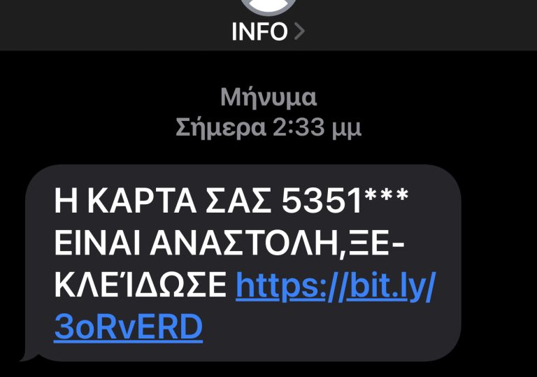Σε καμία περίπτωση μην ακολουθήσετε το σύνδεσμο που επισυνάπτεται στο SMS!