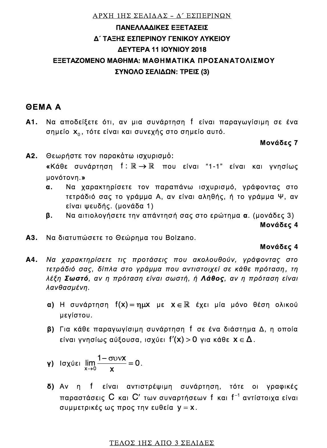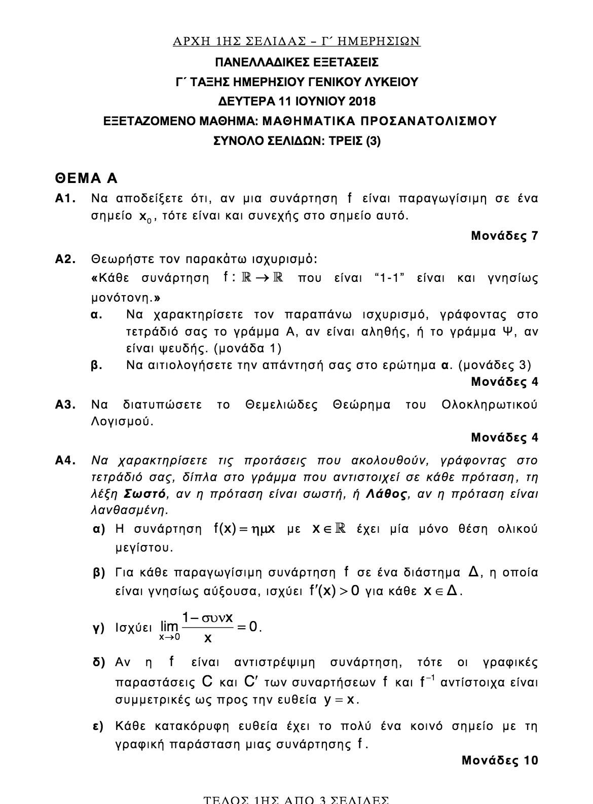 ΣΗΜΕΡΑ 11-6-2018: ΜΑΘΗΜΑΤΙΚΑ – Ο.Π. ΘΕΤΙΚΩΝ ΣΠΟΥΔΩΝ + Ο.Π. ΣΠΟΥΔΩΝ ΟΙΚΟΝΟΜΙΑΣ &ΠΛΗΡ/ΚΗΣ