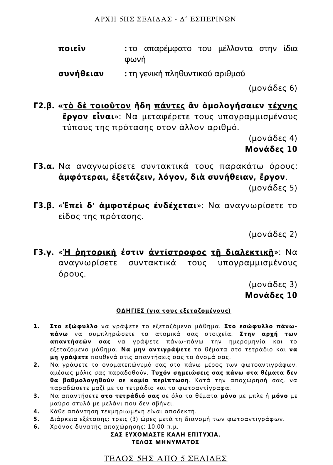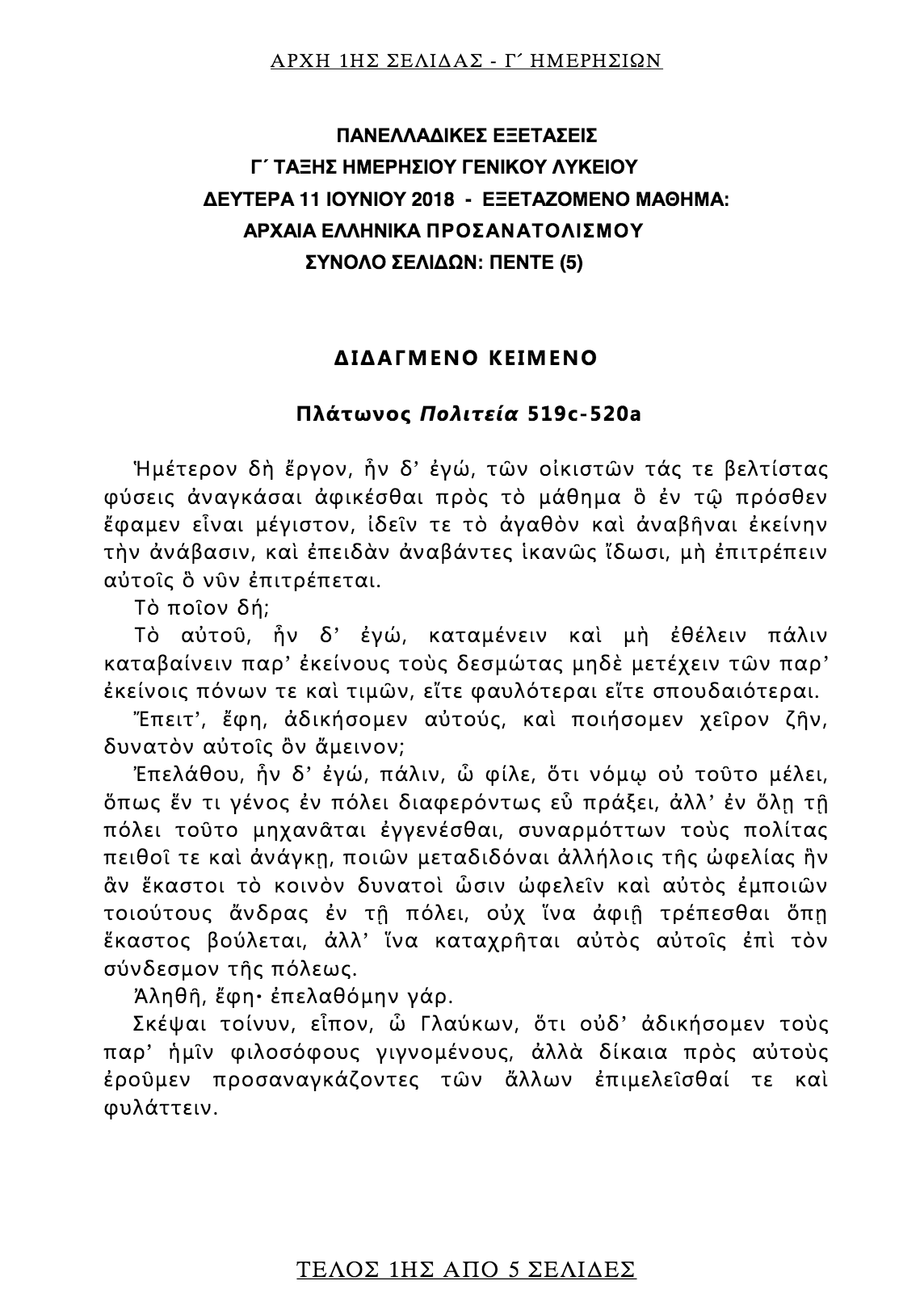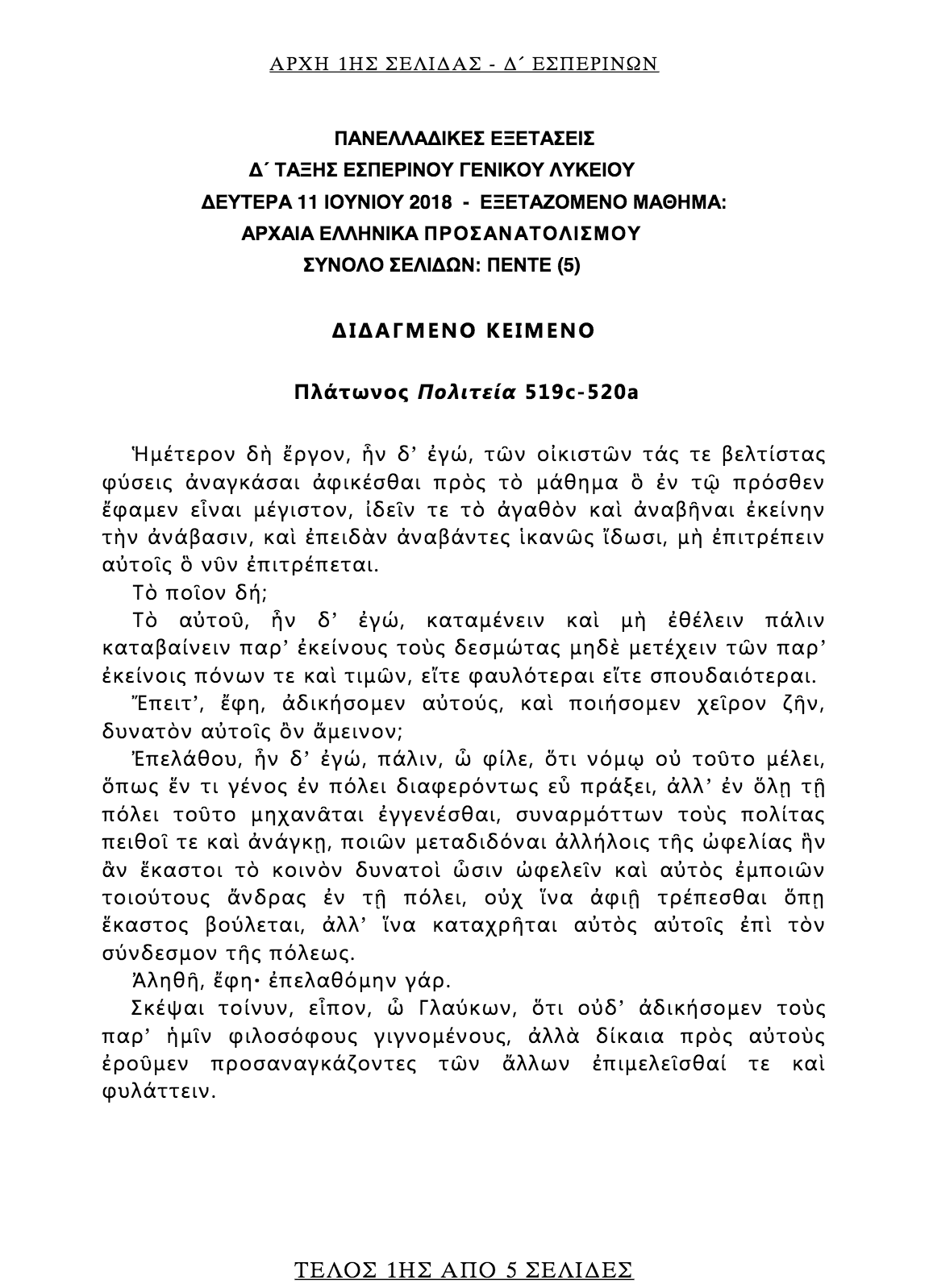 ΣΗΜΕΡΑ 11-6-2018: ΑΡΧΑΙΑ ΕΛΛΗΝΙΚΗ ΓΛΩΣΣΑ – Ο.Π. ΑΝΘΡΩΠΙΣΤΙΚΩΝ ΣΠΟΥΔΩΝ