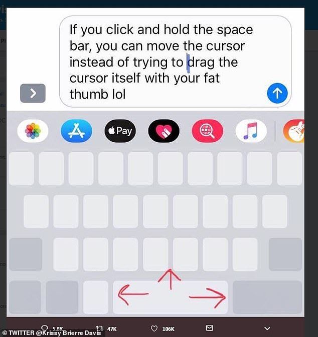«Αν πατήσετε και κρατήσετε πατημένο το πλήκτρο διαστήματος (space) μπορείτε να μετακινήσετε τον κέρσορα αντί να προσπαθήσετε να σύρετε τον ίδιο τον δρομέα με το παχύ δάχτυλό σας», εξήγησε ο άνθρωπος που ανακάλυψε το τρικ και το μοιράστηκε με όλους στα social medeia.