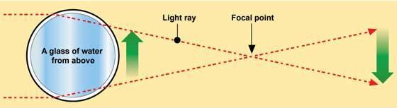 Εχουμε μια απλή κόλλα χαρτί στην οποία είναι σχεδιασμένα δύο βέλη που δείχνουν προς την ίδια κατεύθυνση. Τοποθετούμε μπροστά από την κόλλα ένα διαφανές ποτήρι και η εικόνα, φυσικά, παραμένει ίδια. Γεμίζουμε το ποτήρι με νερό μεχρι το ύψος του πρώτου βέλους και τότε μέ ένα τρόπο… μαγικό το βέλος αλλάζει φορά και δείχνει προς την αντίθετη κατεύθυνση!