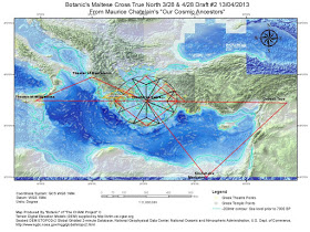 Υποστηρίζει μέσα στο κεφάλαιο αυτό ότι αν συνδέσουμε κάποιες συγκεκριμένες τοποθεσίες του ελλαδικού χώρου με ευθείες γραμμές από σημείο σε σημείο με την ακόλουθη σειρά: Δήλος (στο κέντρο), Ματαπάν, Ερμιόνη, Δελφοί – Δήλος, Ψαθούροι, Λέσβος, Αντάνδρος, Δήλος, Σαρδής, Δίδυμα, – Δήλος, Άκρα, Ντιά, Αράντεν και Δήλος, σχηματίζουμε την γεωμετρική μορφή που είναι γνωστή ως «Μαλτέζικος Σταυρός».