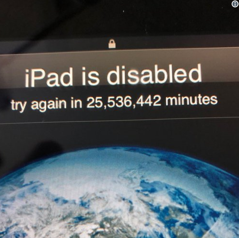 Uh, this looks fake but, alas, it’s our iPad today after 3-year-old tried (repeatedly) to unlock. Ideas? pic.twitter.com/5i7ZBxx9rW