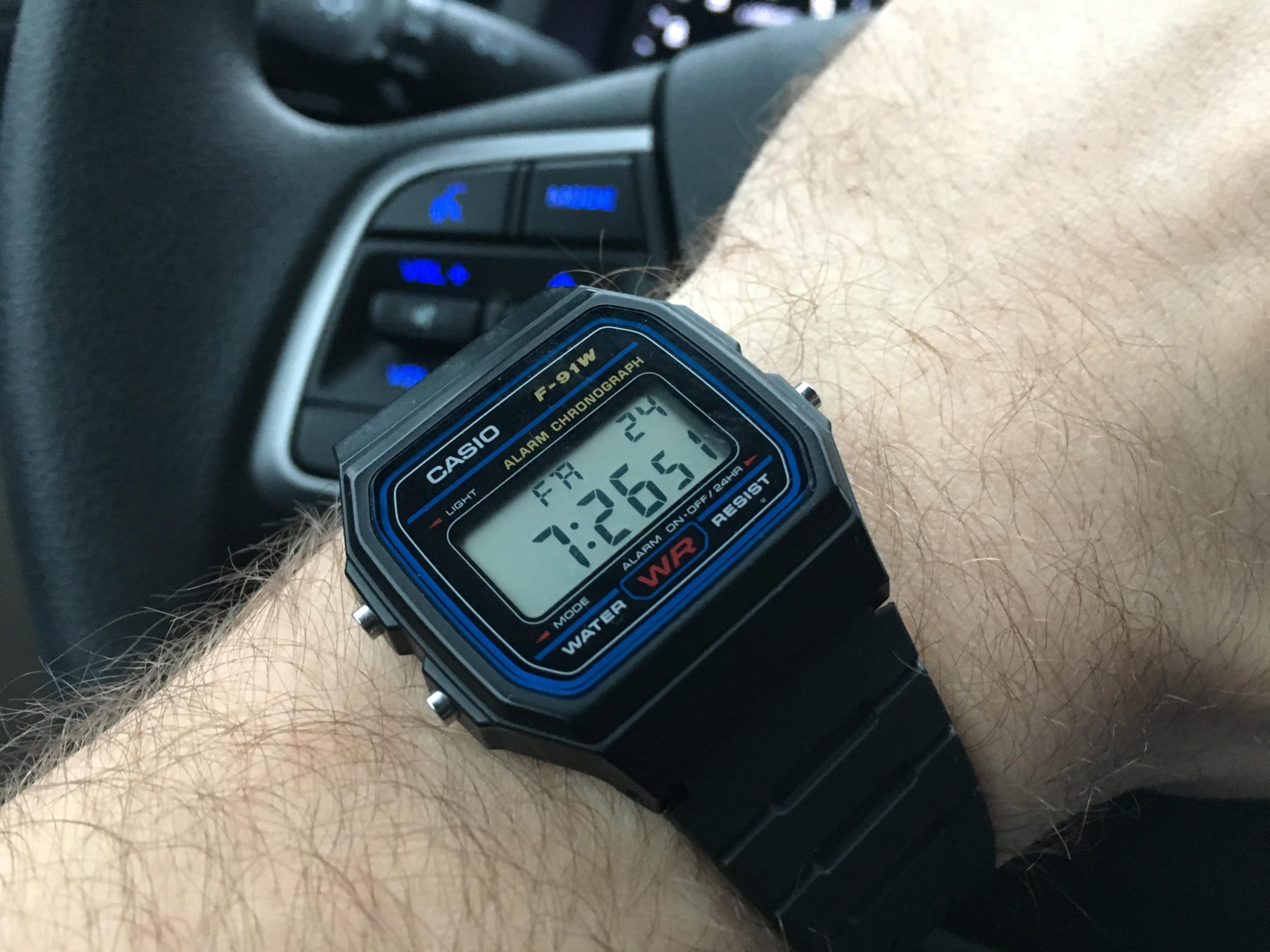 Το Casio F-91W κυκλοφόρησε το 1991 και παραμένει αμετάβλητο όλα αυτά τα χρόνια. Είναι ένα ρολόι που έχει κλασικό σχεδιασμό και δημιουργήθηκε έχοντας εξαιρετική λειτουργικότητα. Η ιαπωνική εταιρεία κατάφερε να κυριαρχήσει στην αγορά του ψηφιακού ρολογιού, μετατρέποντας το συμβατικό ρολόι σε μια «συσκευή πληροφοριών για τον καρπό». Έχει σχεδόν ότι θα ήθελε κανείς από ένα ρολόι: ψηφιακό καντράν, χρονογράφο ακριβείας (χάνοντας όχι περισσότερο από 30 δευτερόλεπτα σε έναν δεδομένο μήνα), χρονόμετρα, ξυπνητήρια, ημερομηνία, οπίσθιο φωτισμό, μέση ζωή μπαταρίας τα 7 έτη, είναι αδιάβροχο και πολύ εύκολο στην χρήση.