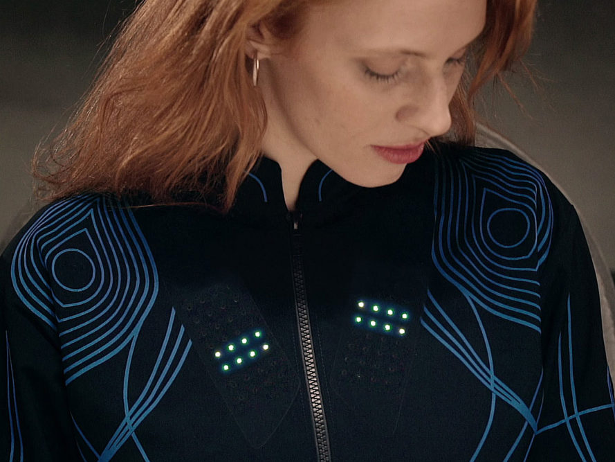 «Μέσα στην μπλούζα, η οποία, παρεμπιπτόντως είναι κατασκευασμένη αποκλειστικά από ύφασμα, δηλαδή δεν περιέχει καλώδια αλλά μόνο΄έξυπνα υφάσματα’, υπάρχει ένας συνδυασμός από μικροηλεκτρονικά… πολύ λεπτά και ευέλικτα και αγώγιμα υφάσματα. Όλα αυτά τα μικρά ηλεκτρονικά μοτέρ συνδέονται με αυτά τα αγώγιμα υφάσματα ώστε το ρούχο να είναι μαλακό και ελαστικό», εξηγεί η Ροσέλα.