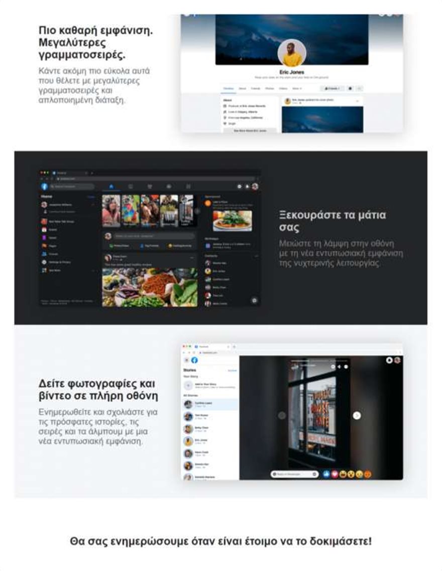 Και αυτό, διότι το Facebook ετοιμάζεται να αλλάξει… εμφάνιση. Μάλιστα, η εταιρία επέλεξε ορισμένους χρήστες ώστε να τους δώσει την ευκαιρία να δουν αυτή τη νέα εμφάνιση από τώρα, πριν εφαρμοστεί σε ολόκληρο το δίκτυο της πλατφόρμας.