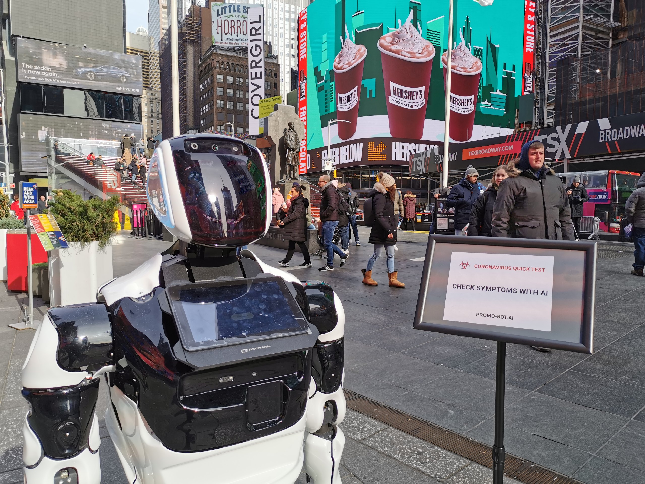 Ένα ρομπότ ύψους 1,5 μέτρου, το Promobot, τέθηκε στις υπηρεσίες των Νεοϋορκέζων και των τουριστών που ανησυχούν για την εξάπλωση του νέου κορωνοϊού.