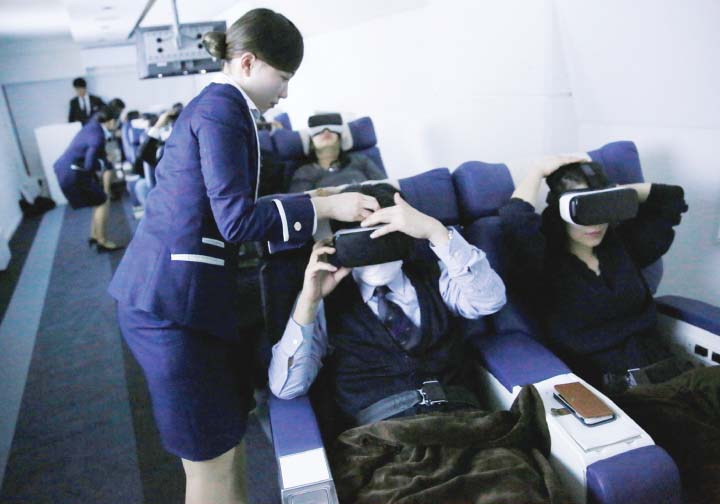 Οι εικονικοί ταξιδιώτες κάθονται στην πρώτη θέση ή στην ‘business class’ σε μια προκατασκευασμένη καμπίνα αεροσκάφους όπου τους σερβίρουν γεύμα και ποτά, ενώ γύρω τους υπάρχουν επίπεδες οθόνες με τις οποίες έχουν την εντύπωση ότι βλέπουν έξω, από το παράθυρο του αεροπλάνου, χαζεύοντας τα σύννεφα.
