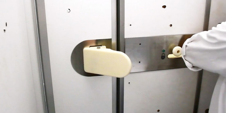 Το πρώτο είναι μια κυλιόμενη κλειδαριά, που επιτρέπει στον χρήστη να κλειδώσει ή να ξεκλειδώσει την πόρτα από μέσα μετακινώντας με την αγκώνα του τη χειρολαβή.