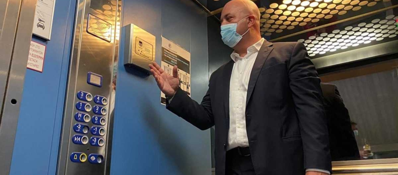 Σε μία περίεργη δημιουργία προχώρησαν στο δημαρχείο Θεσσαλονίκης, όπου τοποθετήθηκε ειδικό ασανσέρ στο πλαίσιο των μέτρων πρόληψης που λαμβάνει για τη μη διάδοση του κορωνοϊού.
