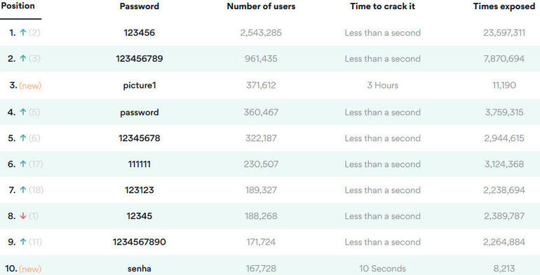 Αίσθηση προκαλεί πως στην πρώτη θέση παγκοσμίως βρίσκεται το 123456, που υπάρχει σε 2.543.285 λογαριασμούς και απαιτείται μόλις… 1 δευτερόλεπτο για να το σπάσουν οι χάκερς.