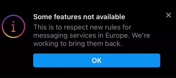 Επίσης, στις δυνατότητες που χάνονται περιλαμβάνεται η αποστολή αρχείων συγκεκριμένου τύπου στο Messenger, τα ψευδώνυμα και η δυνατότητα διαμοιρασμού φίλτρων AR στα προσωπικά μηνύματα του Instagram.