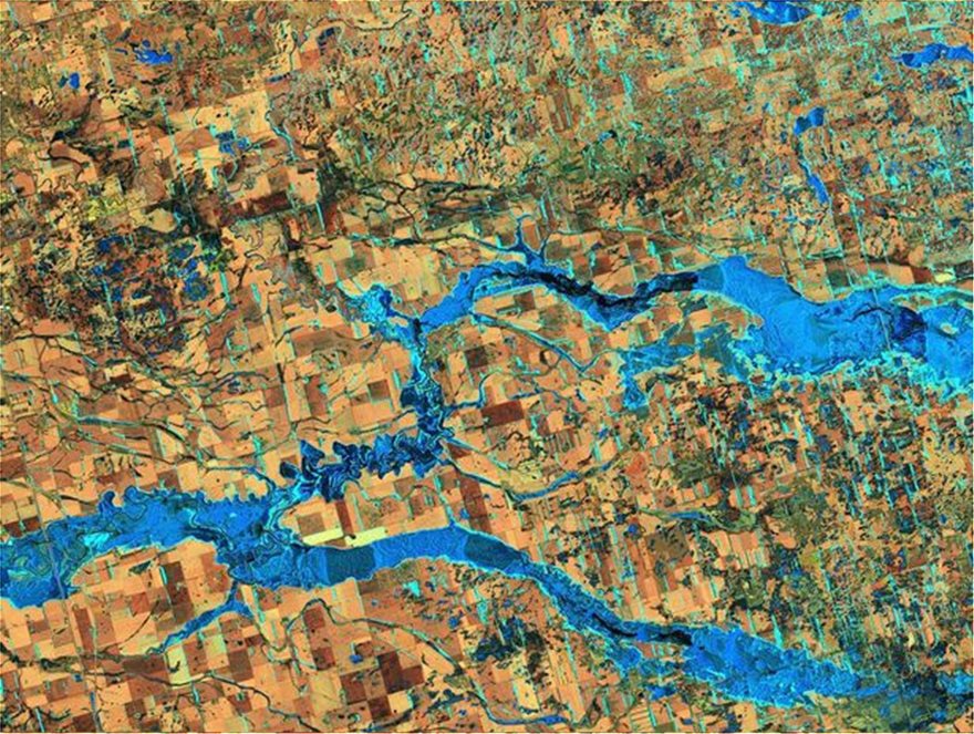 Μέσα σε πέντε χρόνια αλλοιώθηκε, ακόμη, και η εικόνα των ποταμών. Το 2015 φαίνεται η τυπική εικόνα του ποταμού την άνοιξη και το 2020 η υπερχείλιση.