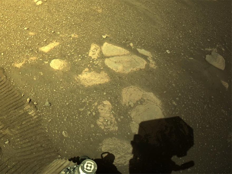 Η NASA έδωσε στη δημοσιότητα τις πρώτες φωτογραφίες από τα ίχνη που άφησαν οι τροχοί του Perseverance στο κοκκινωπό αμμώδες έδαφος του Άρη.