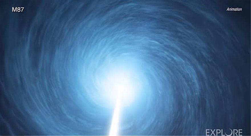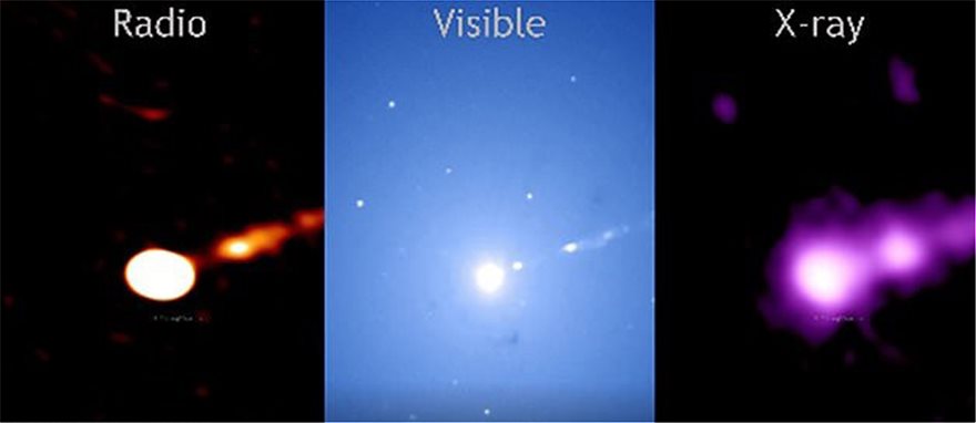 Σε μια σειρά από εικόνες, η μαύρη τρύπα δείχνει να εκτοξεύει πίδακες που παράγουν φως, το οποίο εκτείνεται σε όλο το ηλεκτρομαγνητικό φάσμα, από αόρατα ραδιοκύματα μέχρι ορατό φως και υπερδύναμες ραδιενεργές ακτίνες Γάμμα.