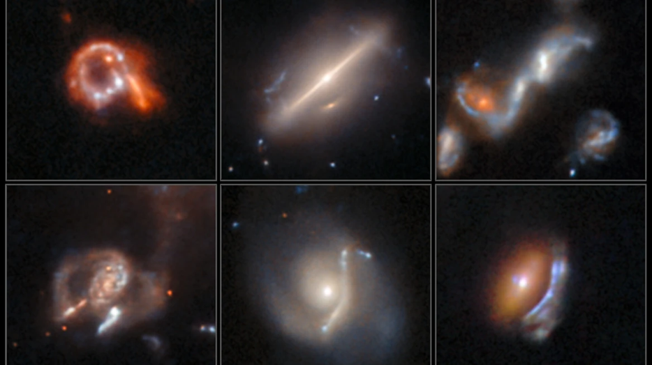 Πολλές άλλες ήταν βαρυτικοί φακοί, όπου η βαρύτητα ενός γαλαξία στο προσκήνιο καμπυλώνει τον χωροχρόνο και παραμορφώνει το φως ενός πιο μακρινού γαλαξία, σχηματίζοντας κύκλους ή τόξα.