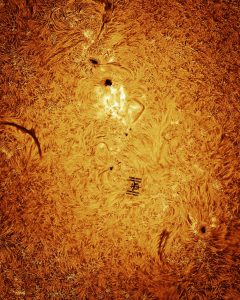 Αυτό που δεν περίμενε ήταν να απαθανατίσει και μια μεγάλη ηλιακή έκλαμψη που εκτοξεύεται από την επιφάνεια του ήλιου. Αποκαλώντας την «μια στο εκατομμύριο λήψη», η εικόνα είναι πραγματικά ένα μείγμα δεξιοτεχνίας και τύχης.