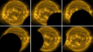 Στις 25 Ιουλίου 2025, το Παρατηρητήριο Ηλιακής Δυναμικής (SDO) της NASA κατέγραψε μια σπάνια ηλιακή έκλειψη από την τροχιά του στο διάστημα.