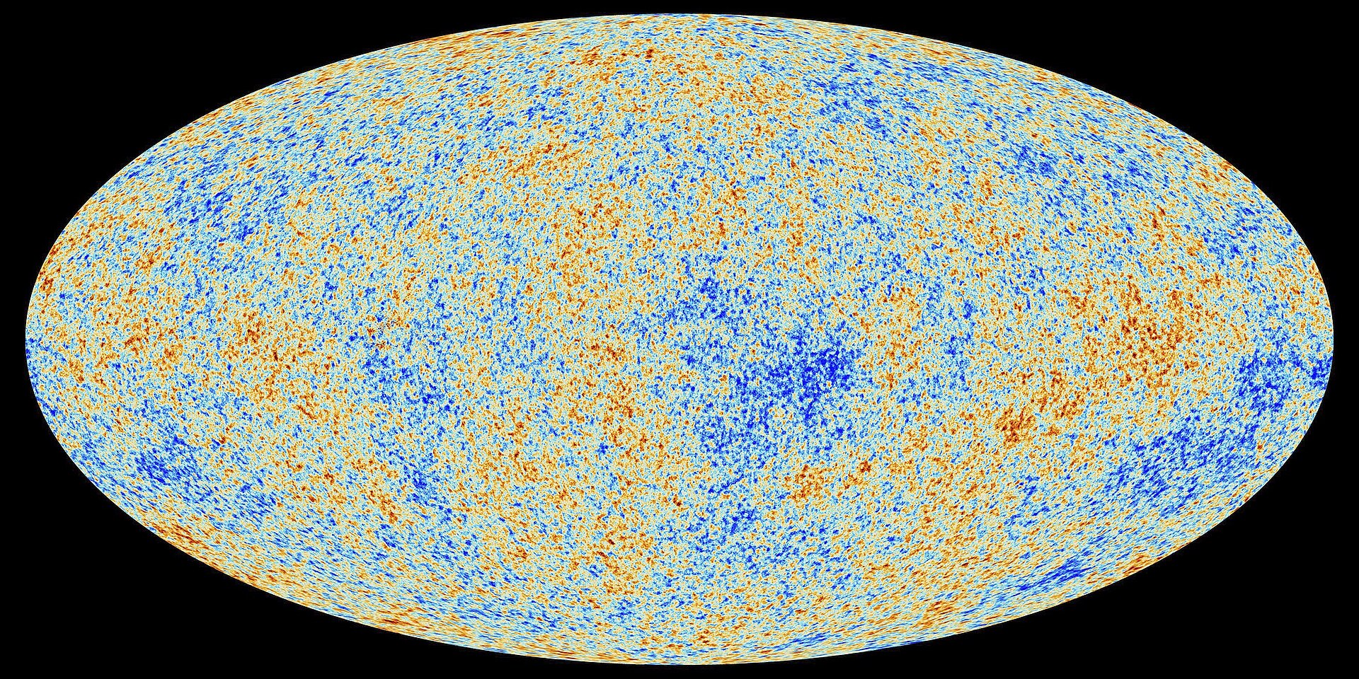 This map of the Cosmic Microwave Background radiation, imprinted on the sky when the universe was 370,000 years old, shows tiny temperature fluctuations that correspond to regions of slightly different densities. Read more here.
