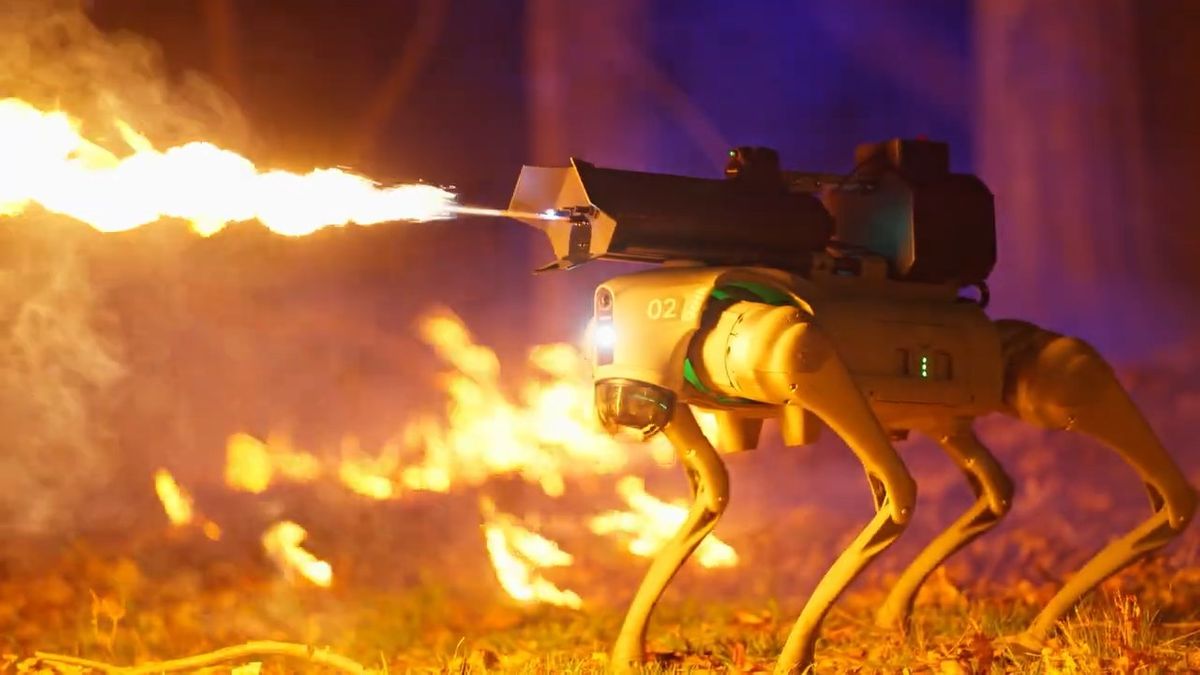 Το Thermonator, το οποίο είναι ένα ρομπότ – σκύλος με ενσωματωμένο φλογοβόλο, που ελέγχεται μέσω smartphone, είναι διαθέσιμο προς πώληση στο ευρύ κοινό των ΗΠΑ.