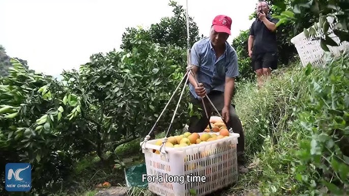 Βαθιά στα βουνά της Κίνας, drones βοηθούν τους αγρότες που μεταφέρουν πορτοκάλια.