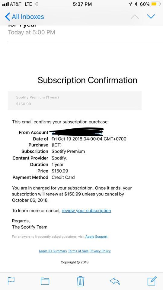 Αυτό γίνεται μέσω ενός e-mail, το οποίο φαίνεται να είναι από το Spotify και μοιάζει σαν επιβεβαίωση αγοράς υπηρεσιών, την οποία μπορεί να τσεκάρει ο χρήστης μέσω ενός link που περιλαμβάνει και στο οποίο δίνεται η δυνατότητα ακύρωσης.