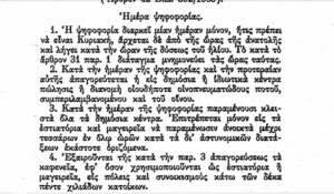 Συγκεκριμένα στον εκλογικό νόμο του 1974 στο Κεφάλαιο Β’, άρθρο 42 αναφέρεται στο κεφάλαιο που τιτλοφορείται «Ημέρα ψηφοφορίας»: «Κατά την ημέραν της ψηφοφορίας και την προτεραίαν αυτής απαγορεύεται η εις δημόσια ή ιδιωτικά κέντρα πώλησις ή διανομή οιουδήποτε οινοπνευματώδους ποτού, συμπεριλαμβανομένου και του οίνου» ακόμα «Κατά την ημέρα της ψηφοφορίας παραμένουσι κλειστά όλα τα δημόσια κέντρα. Επιτρέπεται μόνον εις τα εστιατόρια και τα μαγειρεία να παραμένωσιν ανοικτά μέχρι τεσσάρων εν όλω ωρών κατά τα δι’ αστυνομικών διατάξεων εκάστοτε οριζόμενα».