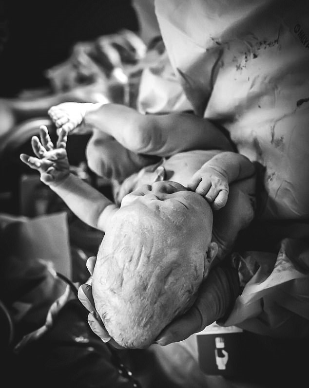 Μια απίστευτη ασπρόμαυρη φωτογραφία δείχνει το κεφάλι του Graham να έχει κωνικό σχήμα λίγα λεπτά μετά την έξοδό του από το κανάλι γέννησης.