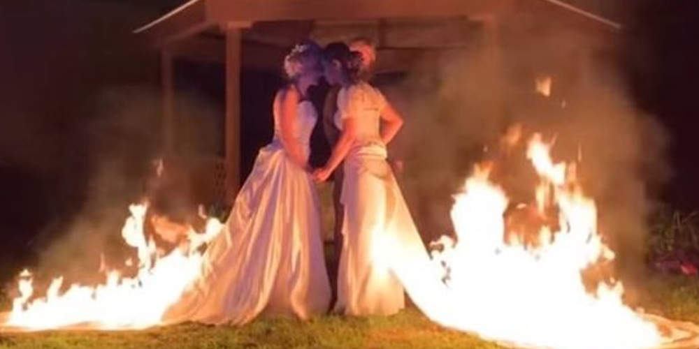 Μία πρωτότυπη ιδέα είχαν αυτές οι δύο νύφες στον γάμο τους, οι οποίες για χάρη του γαμήλιου άλμπουμ τους… παραλίγο να πάρουν φωτιά.