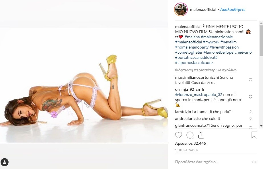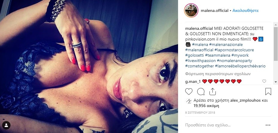 Εμείς (και 466.000 άλλοι followers) την ακολουθούμε και από το https://www.instagram.com/malena.official/ διαλέξαμε κάποιες φωτογραφίες όχι με πολιτικό αλλά με απλό πάθος.
