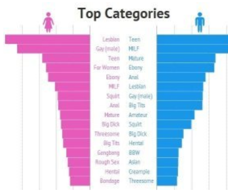 Η μελέτη, η οποία πραγματοποιήθηκε σε συνεργασία με το Buzzfeed, οι τρεις δημοφιλέστερες κατηγορίες αναζήτησης για το γυναικείο φύλο ήταν εκείνες με τη λέξη – κλειδί είναι με βάση το διάγραμμα.