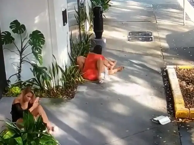 Λίγο έξω από την έξοδο του καταστήματος, σε σαφώς πολύ εύθυμη κατάσταση, άρχισαν να αγκαλιάζονται και να φιλιούνται ερωτικά, αδιαφορώντας για τον κόσμο που περνούσε από το σημείο.