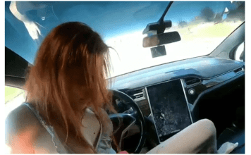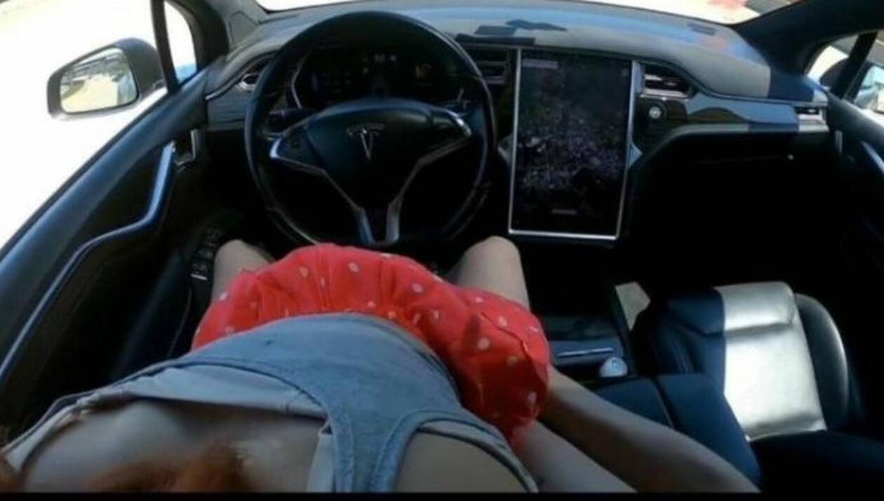 Ένα από τα μεγαλύτερα προσόντα του Tesla είναι ο αυτόματος πιλότος. Κάπως έτσι, το ζευγάρι αποφάσισε να το εκμεταλλευτεί, γυρνώντας εν κινήσει το video ενώ οι οδηγοί δίπλα κοιτούσαν με το στόμα ανοιχτό!