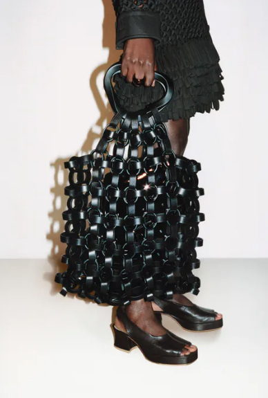 Οι ψάθινες τσάντες κυριαρχούν εδώ και αρκετές καλοκαιρινές σεζόν και αυτή η χρονιά δεν αποτελεί εξαίρεση. Η Bottega Veneta αποφάσισε να μην παρεκκλίνει από την παράδοση και να συνεχίσει να ακολουθεί την πλεκτή δερμάτινη τάση. Αυτή τη φορά, ο οίκος αποφάσισε να δουλέψει με υφή και η μαύρη τσάντα του μοιάζει πολύ με την παραδοσιακή ψάθινη τσάντα.