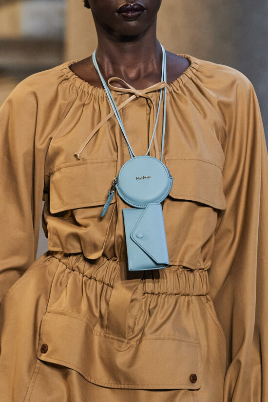 Αυτή τη φορά, οι σχεδιαστές αποφάσισαν να δείξουν προτίμηση όχι μόνο στις τσάντες μέσης, αλλά και να επικεντρωθούν σε ένα εξίσου σημαντικό αξεσουάρ, όπως οι τσάντες πορτοφόλια που κρέμονταν στο λαιμό των μοντέλων στις επιδείξεις των Max Mara και Louis Vuitton.