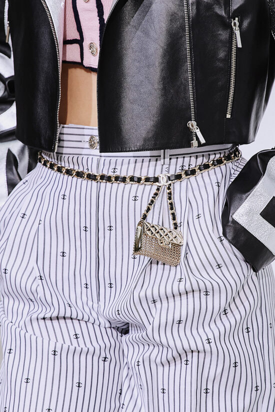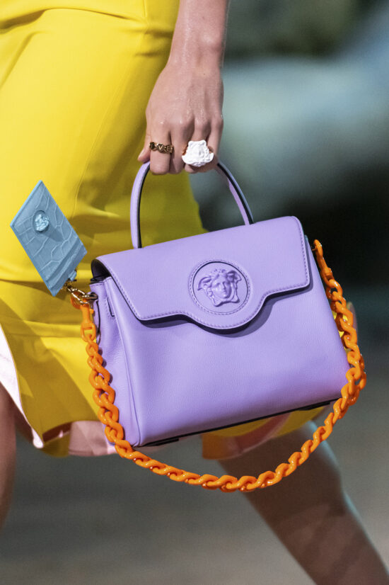 Οι αλυσίδες είναι η πιο διάσημη τάση των τελευταίων σεζόν. Για το καλοκαίρι, οι τσάντες με πολύχρωμες αλυσίδες είναι μια εξαιρετική επιλογή για να συνδυάσει κανείς με μια απλή εμφάνιση, όπως έδειξε το σόου Versace.